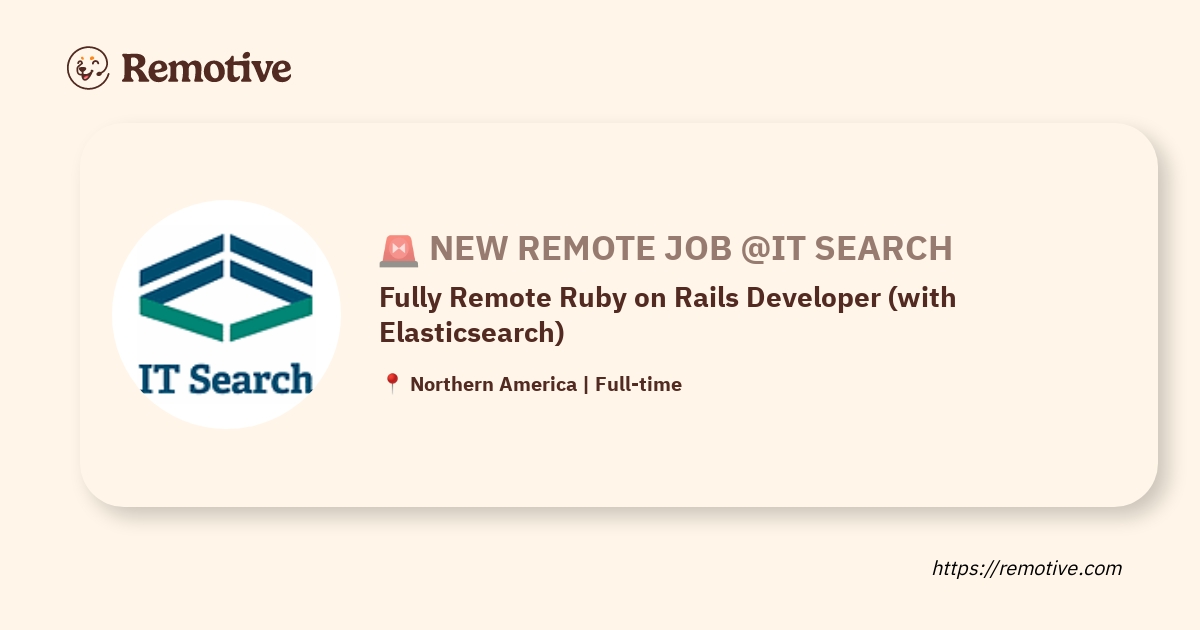 Fully Remote Ruby on Rails Developer (with Elasticsearch) – Permanent Position